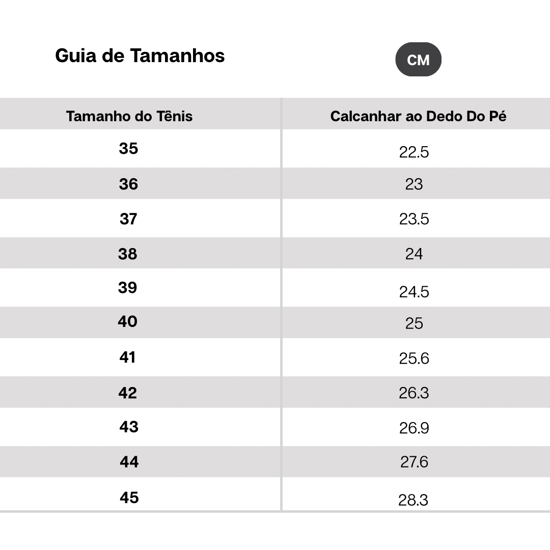- Fechamento em cadarço para melhor ajuste ao seus pés